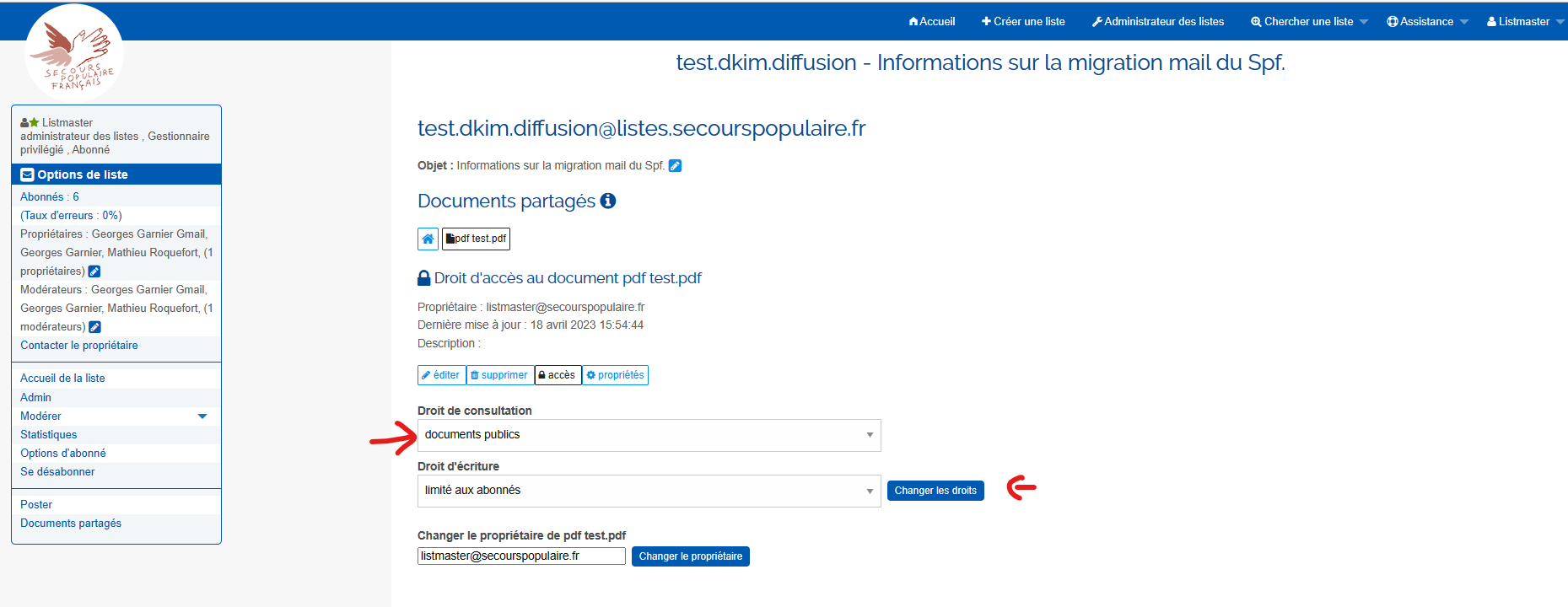 Puis, dans droit de consultation, sélectionner document publics et valider votre choix en cliquant sur changer les droits.