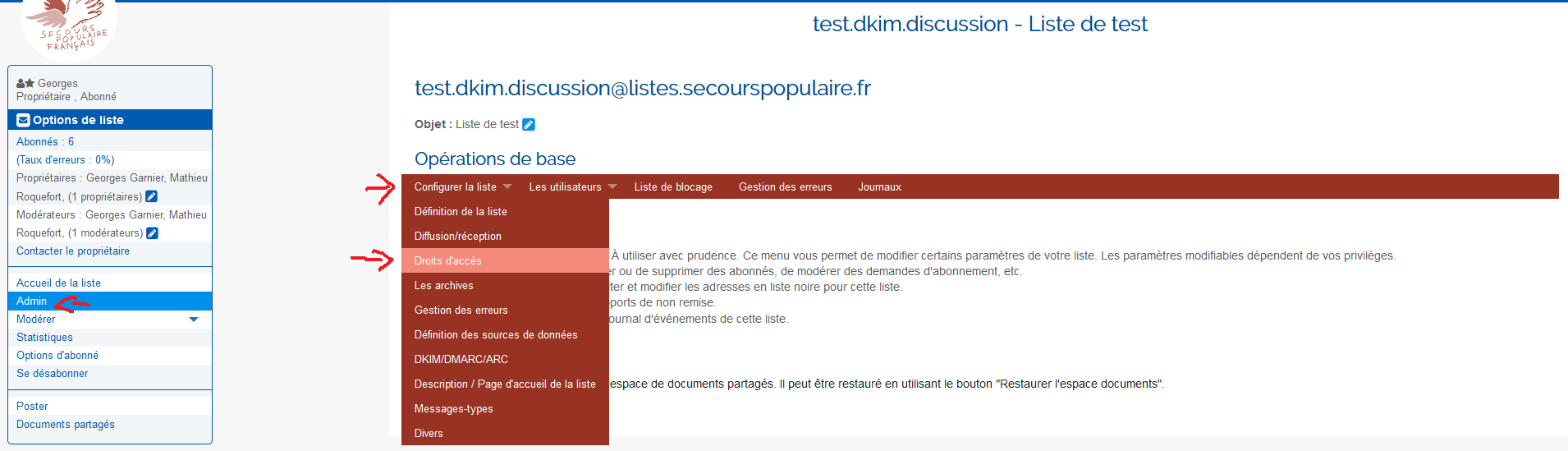 Une fois cette partie faite, cliquer sur Admin dans le bandeau de gauche et selectionner dans configurer la liste, droits d'accès.