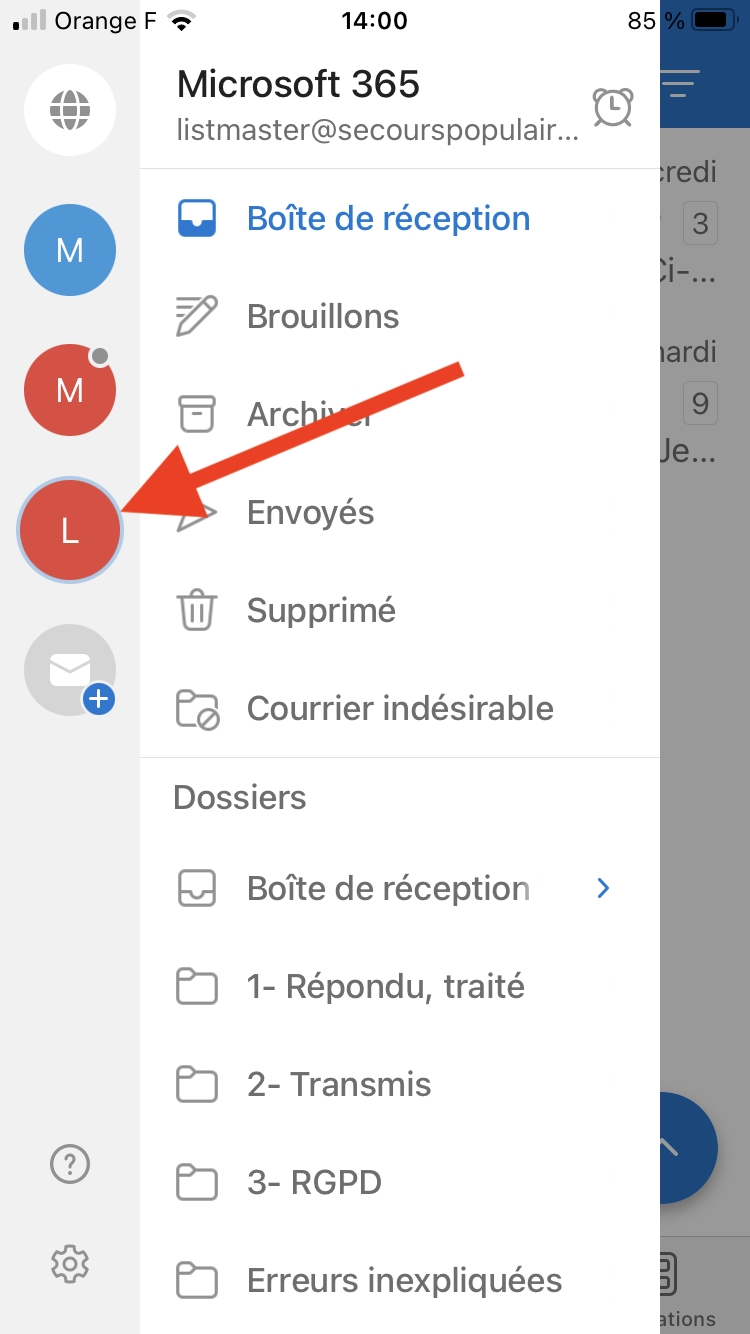 La boîte aux lettres partagée est maintenant disponible dans la liste de vos comptes :