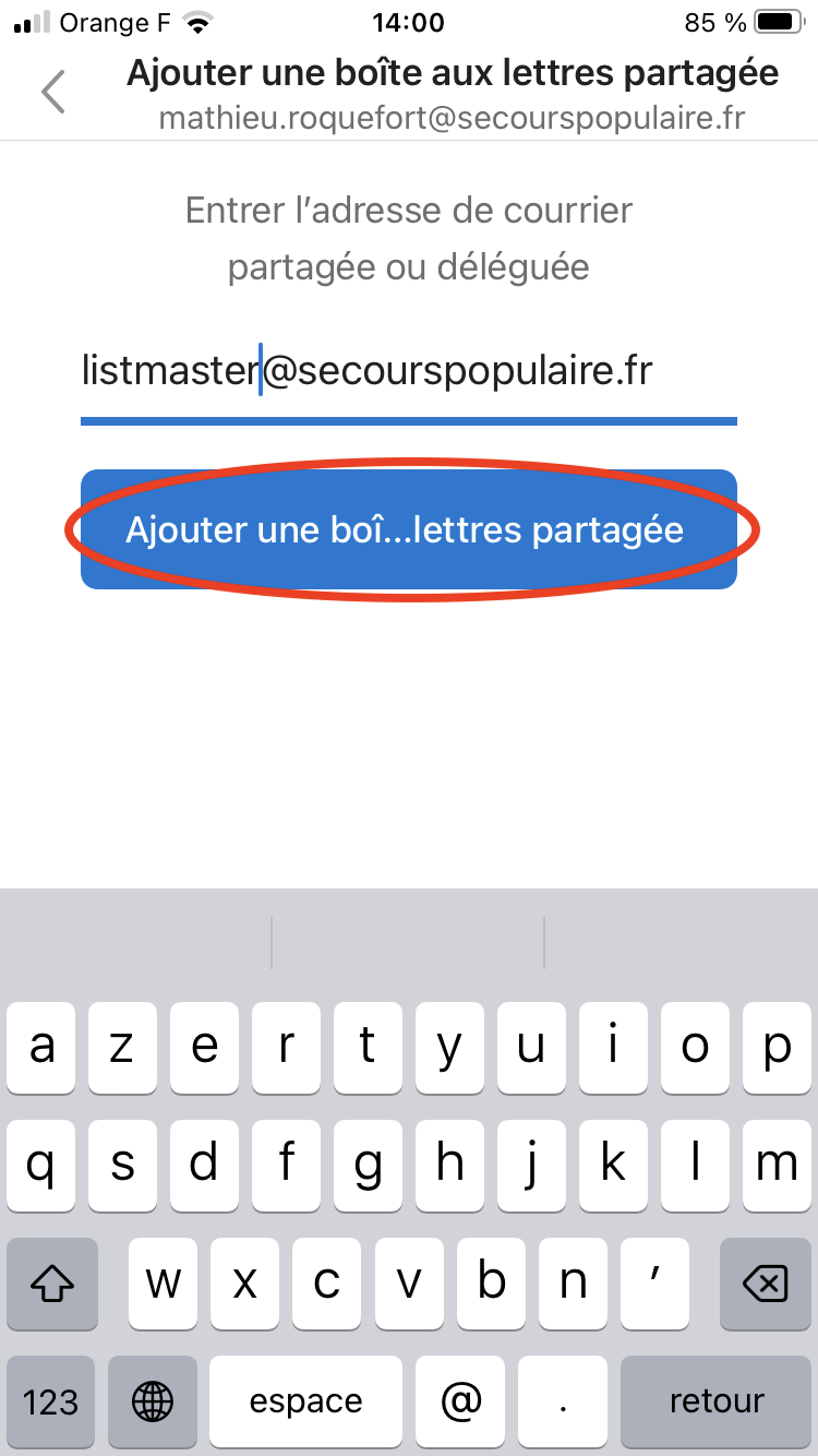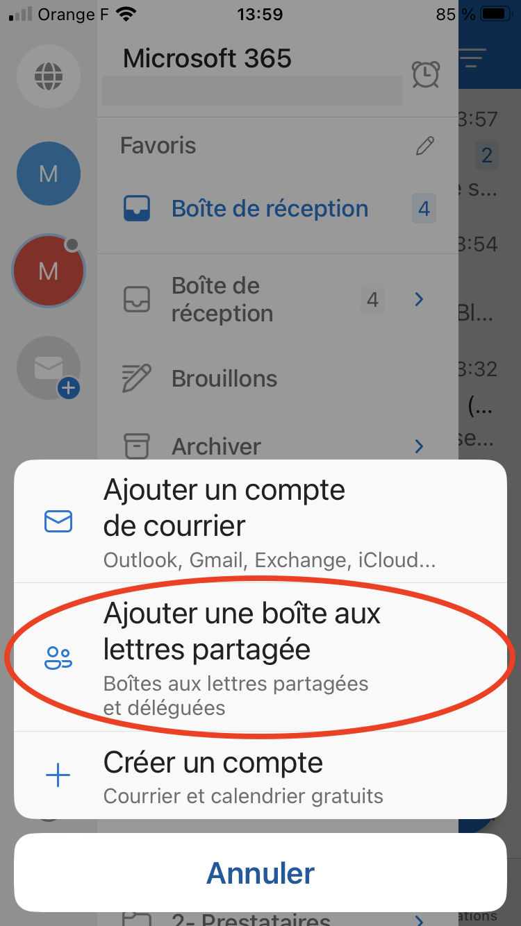 1. Ajouter la boîte partagée à votre adresse personnelle