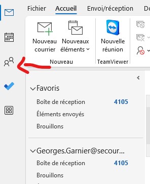 Pour voir les contacts qui ont été importés, cliquez sur l’icône Contacts, à gauche de la fenêtre d’Outlook.