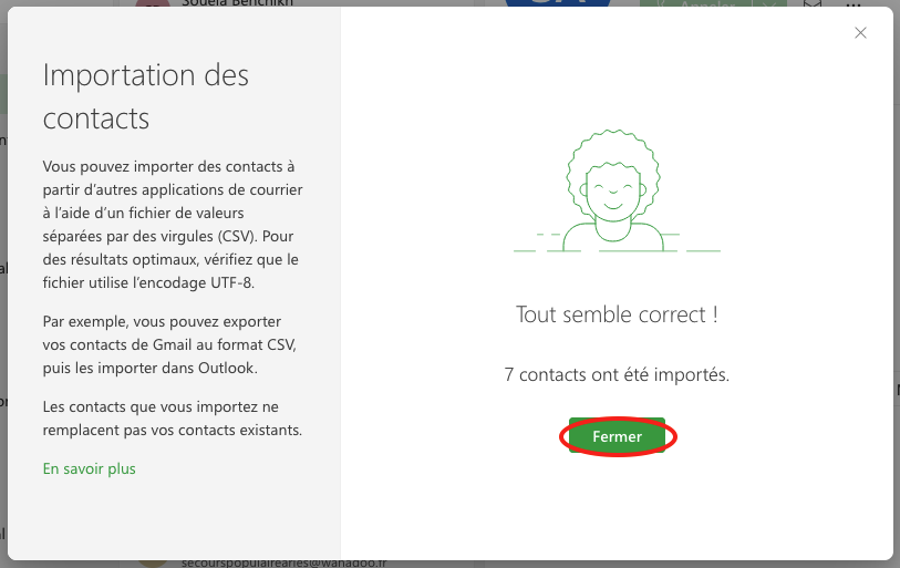 Un message de confirmation s'affiche. Vos contacts sont importés !