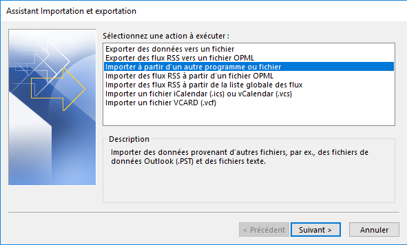 Dans la fenêtre qui s’ouvre, choisissez Importer à partir d’un autre programme ou fichier. Suivant.