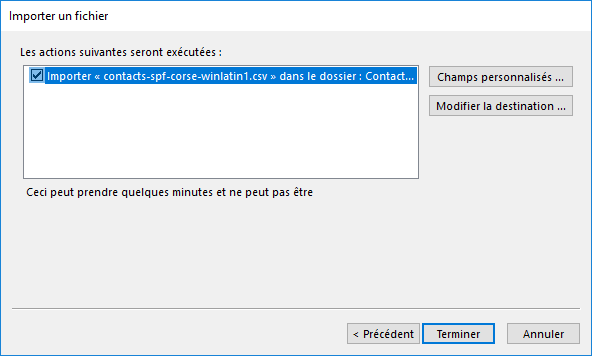 Si vous avez déjà re-créé manuellement certains de vos contacts dans Outlook et que vous ne voulez pas créer de doublons, sélectionnez l’option Remplacer les doublons par les éléments importés.
