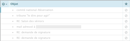 Si vous voyez, dans la liste des messages, certains messages grisés avec un visuel de rond barré dans la colonne qui sert à marquer les messages avec une étoile, c’est que ces messages ont été marqués par Outlook au lieu d’être supprimés :