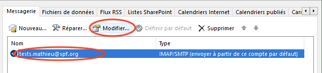 Dans la liste, sélectionnez votre compte puis cliquez sur le bouton Modifier… :