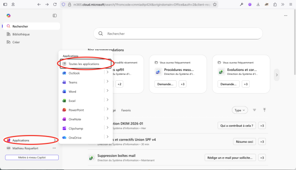 Une fois connecté, cliquez en bas à gauche sur Applications, puis sur Toutes les applications.