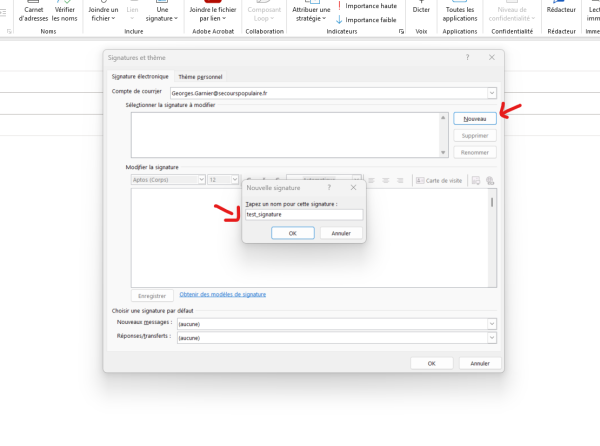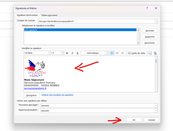 Cette opération faite, notre systeme devrait directement reconnaitre votre adresse email et ajouter la signature automatiquement.