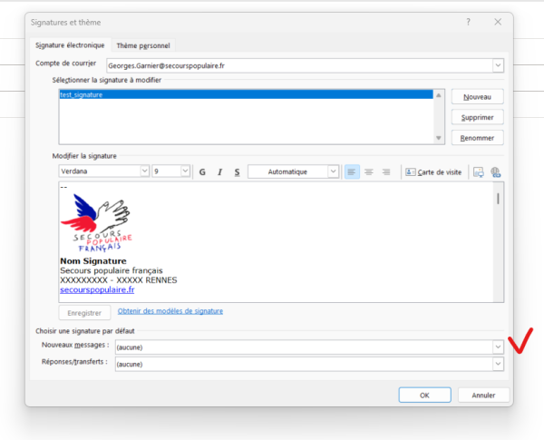 et assurez-vous que le champ choisir une signature par défaut soit sur aucune