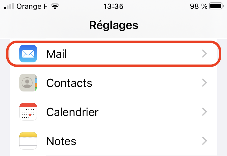 Rendez-vous dans les Réglages, puis choisissez Mail :