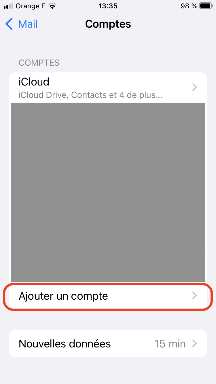 Faites un tap sur Comptes, puis Ajouter un compte :
