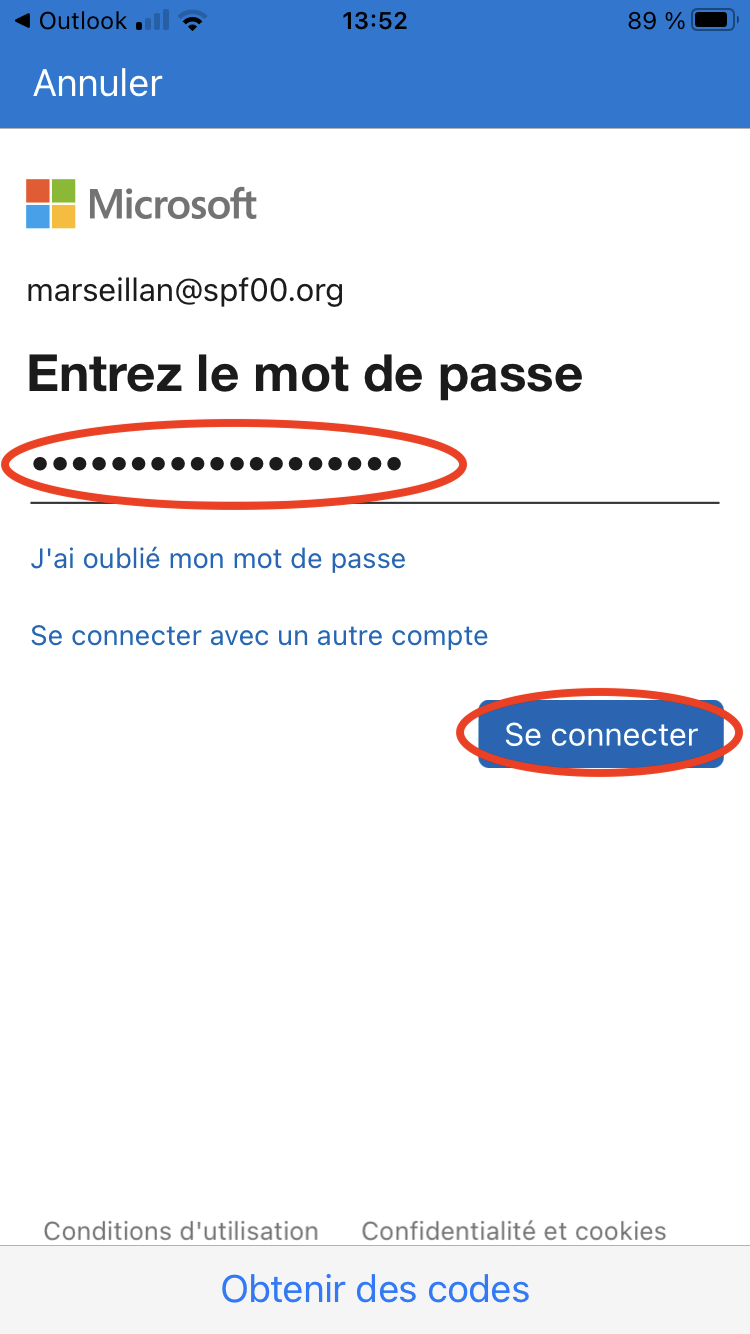 Indiquez le mot de passe de votre boîte mail, puis Se connecter :