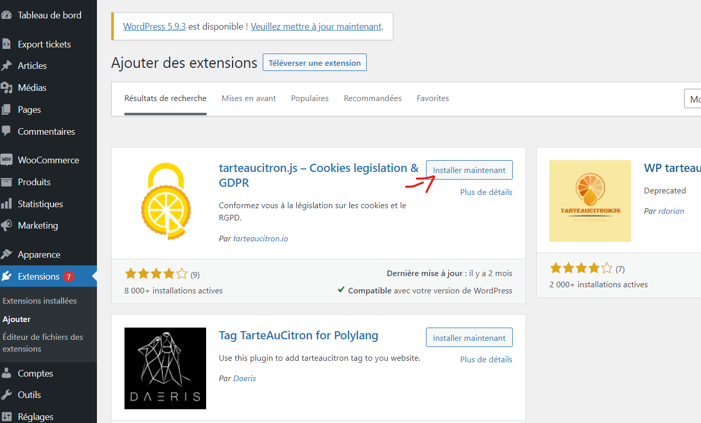 Le plugin de Tarteaucitron pour Wordpress vous permet de gérer jusqu’à 3 marqueurs dans sa version gratuite. Ci-dessous les étapes à suivre pour son installation.