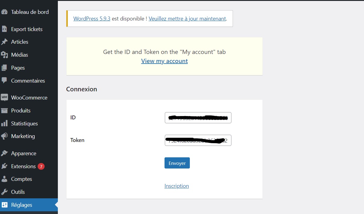 Une fois ces informations en votre possession, renseignez-les sur la page de configuration du plugin puis cliquez sur envoyer.