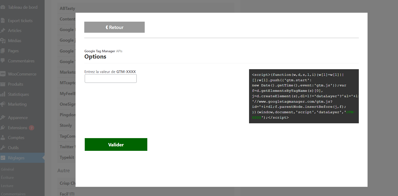 Sachez que certain marqueur, tel que google tag manager, nécessite un identifiant qu’il vous faudra indiquer.