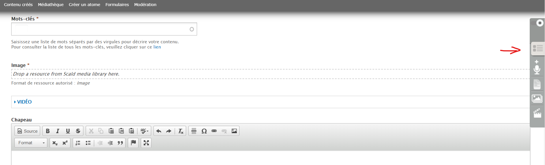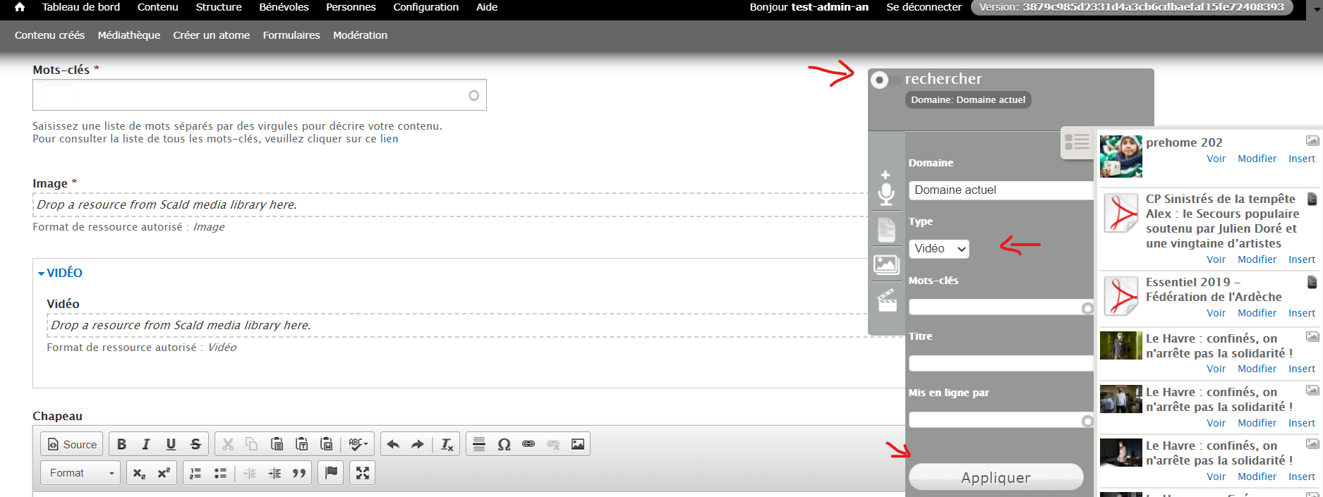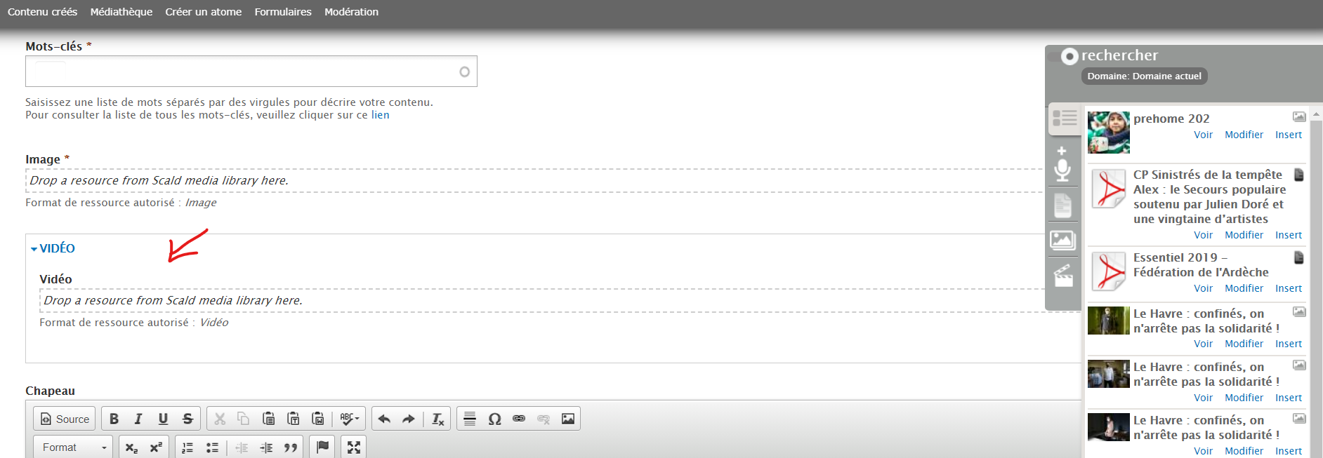 Pour ce faire, recherchez votre vidéo dans le raccourci de la médiathèque se situant à droite, puis faites un glisser-déposer dans le corps du témoignage.